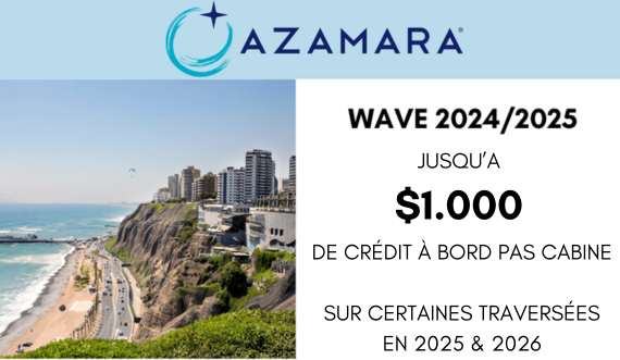 Faites une croisière sur l’un des navires intimes d’Azamara, tous conçus pour naviguer le long des magnifiques côtes du monde, et utilisez votre crédit à bord pour vivre l’expérience ultime Azamara de votre choix.