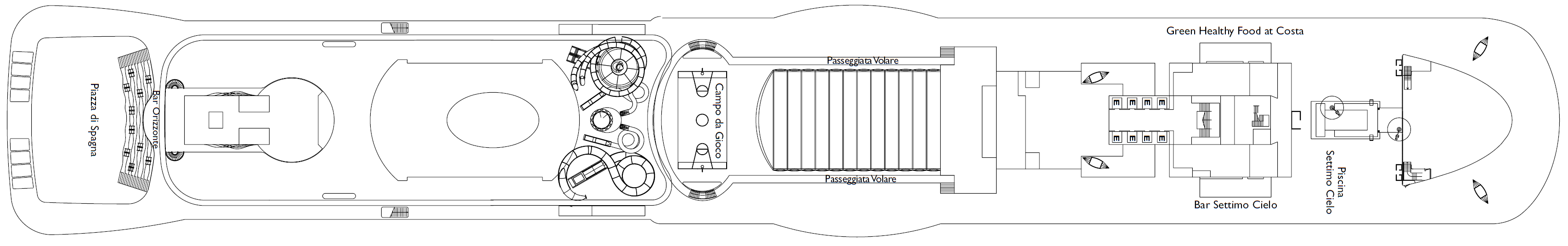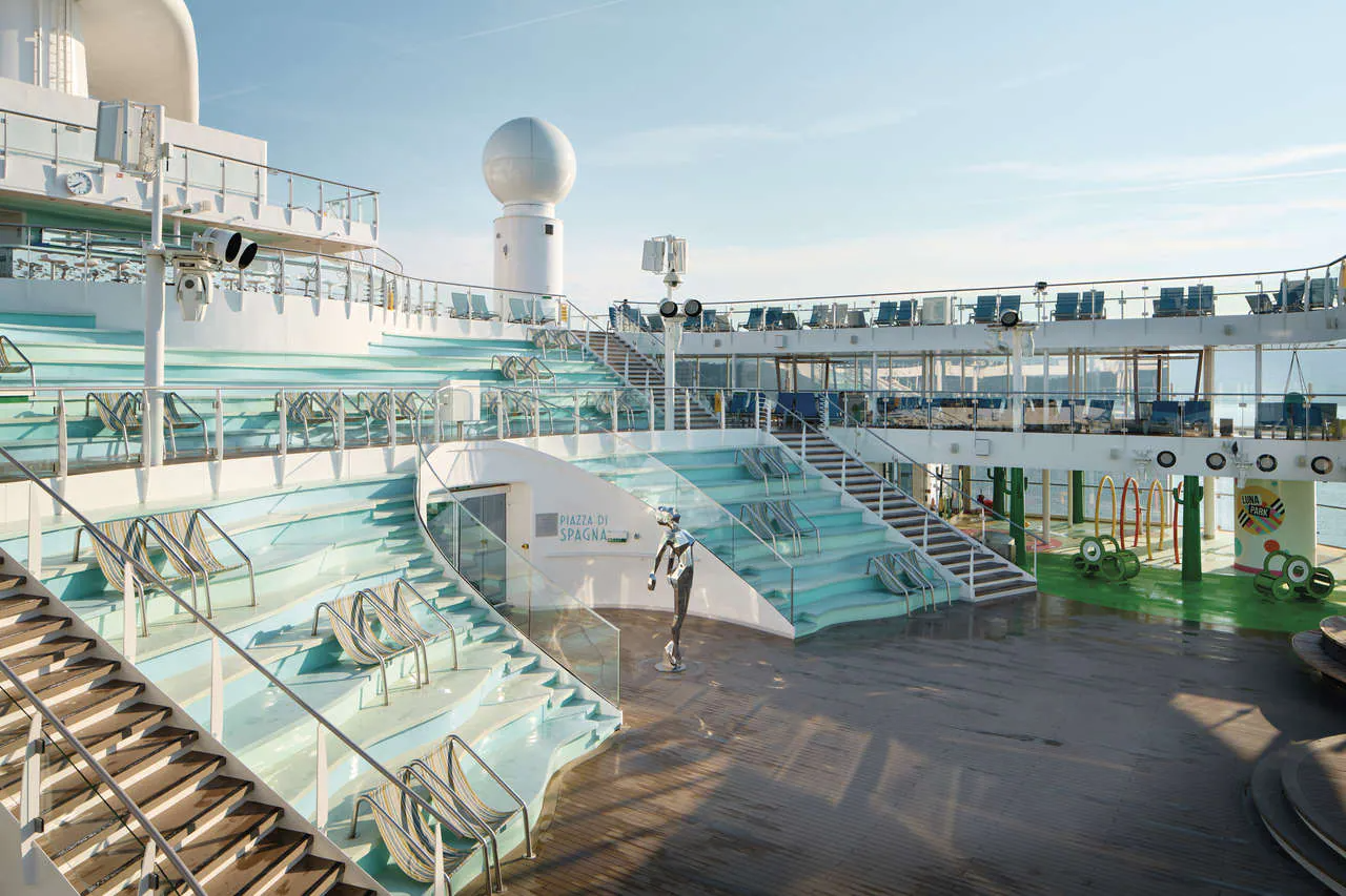 Costa Smeralda is het schip dat symbool staat voor schoonheid, stijl en Italiaanse gastvrijheid. De ruimtes nemen de naam en inspiratie van de pleinen van de “Bel Paese” van Italië: als u door de brede trap van de achtersteven loopt, voelt het alsof u door Piazza di Spagna slentert en door winkels, bars en restaurants loopt om een glimp op te vangen van de levendigheid van magische plaatsen zoals die van Trastevere, met het voorrecht van een uniek perspectief, die van de zee. Een onvergetelijke ervaring om te delen met de mensen van wie u houdt.