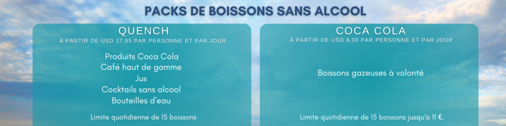 Vous trouverez ici un aperçu des différents forfaits boissons proposés par chaque compagnie maritime.