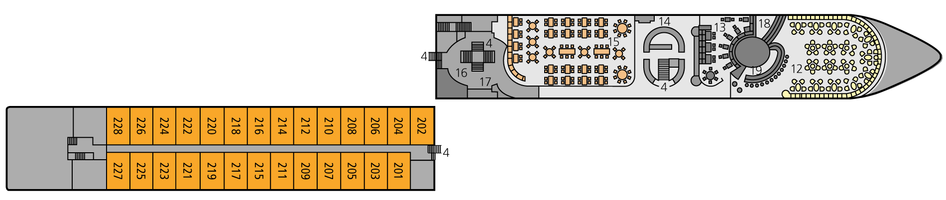 Veel ruimte voor ontspanning en recreatie – maar ook voor fitness en welzijn. Op ons zonnedek vindt u een buitenzwembad, sjoelbak en een putting green. En het beste tijdens uw vakantie: laat het dagelijkse leven met zijn dwanghandelingen achter u. Aan boord van de A-ROSA STELLA heerst daarom een ongedwongen en vriendelijke sfeer.