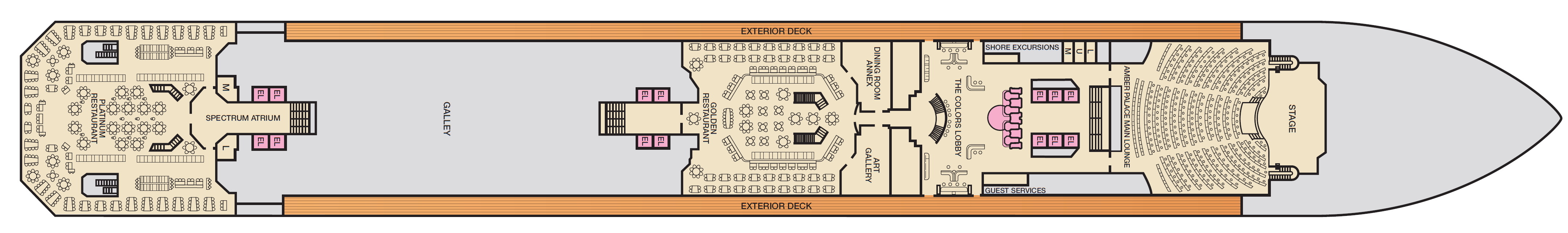 Tijdens de reis zult u genieten van een verscheidenheid aan stand-up comedians op The Punchliner Comedy Club gepresenteerd door George Lopez. Stel u voor dat u een drankje drinkt in de openlucht RedFrog Rum Bar of BlueIguana Tequila Bar. Vertegenwoordig de kleuren van uw favoriete team op het scherm en geniet van een rondje of twee in de EA SPORTS-balk. bekijk een show op het podium bij Playlist Productions, compleet met zang en dans, plus videoschermen die deze producties een extra scheut kleur geven.