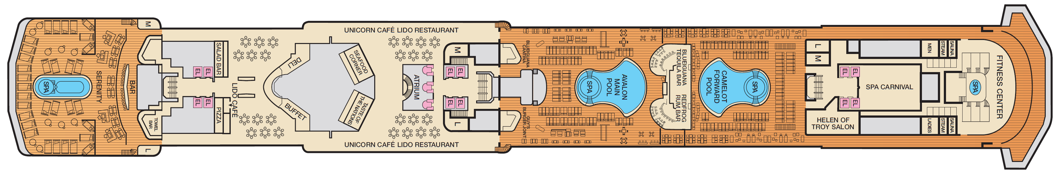 Krijg een idee van het fantastische leven aan boord van dit schip dat door de eeuwen heen eer betoont aan enkele van ’s werelds grootste legendes. Neem een duik in de zwembaden van Camelot en Avalon, wens magie bij Club Merlin Casino en proef iets hartigs bij Truffels Restaurant. Er is meer dan één manier om te dineren in Lido Deck’s Unicorn Café, en bij The Golden Fleece Steakhouse is de geweldige meer gangen-maaltijd geen mythe.