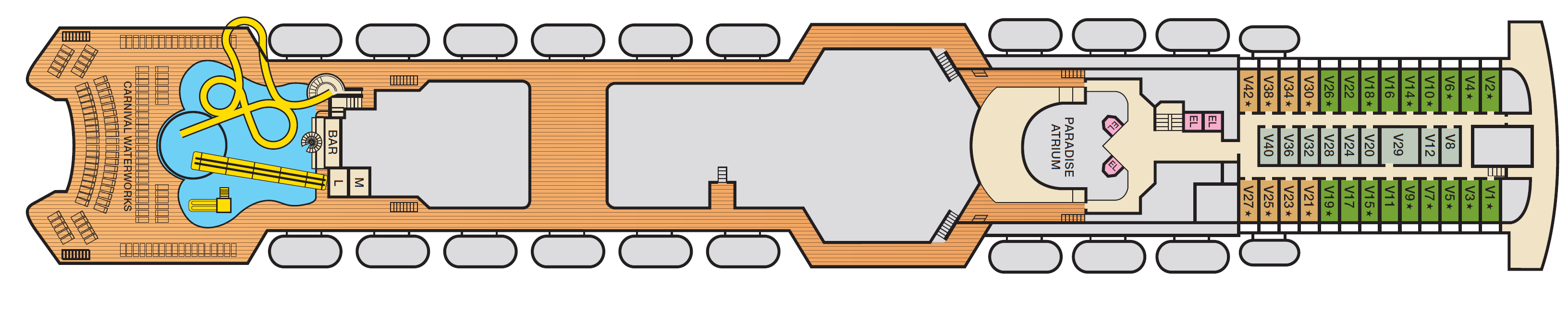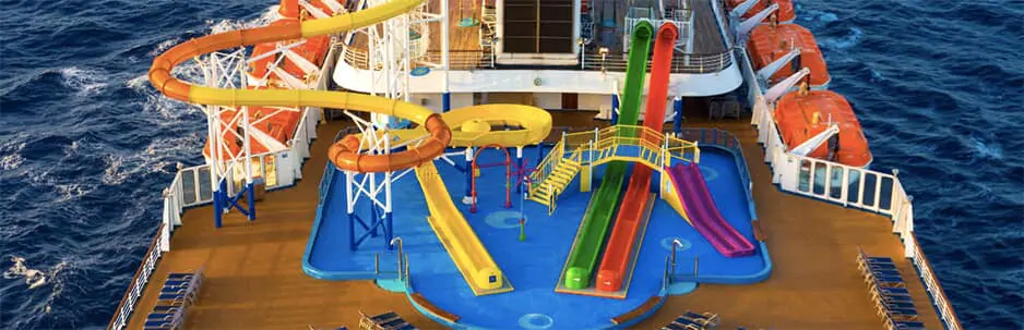 Aan boord treft u diverse zwembaden en bubbelbaden maar ook het WaterWorks waterpark met een gigantische- Spiraalvormige Glijbaan en dubbele raceglijbaan.
