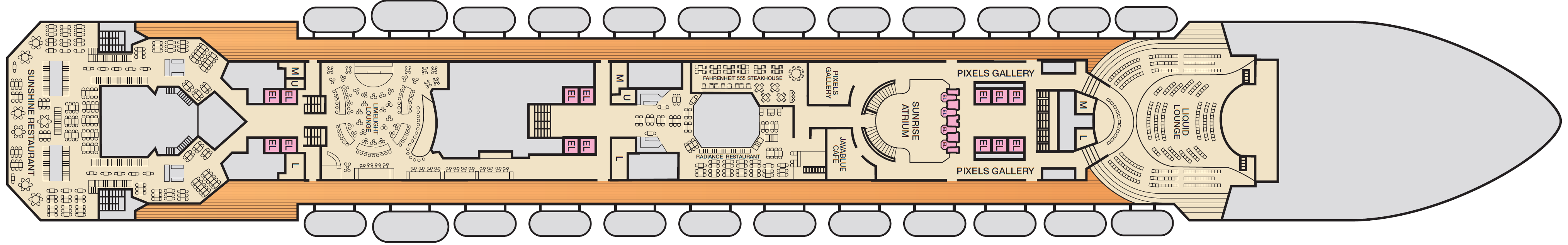 vermaak uzelf bij het zwembad of zoek de spanning op bij de waterglijbaan van Carnival WaterWorks. Bewonder de diverse shows en muziekspelen van Playlist Productions of van een solospel bij de Piano bar 88.