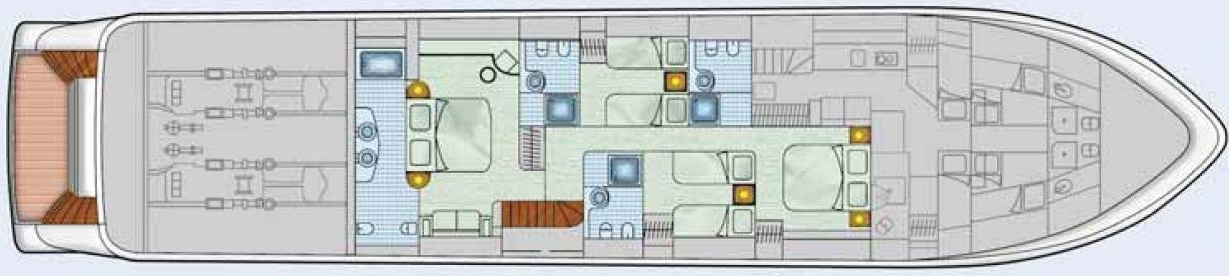 Met haar gestroomlijnde uiterlijk en dubbele MTU-motoren die een topsnelheid van 27 knopen leveren en haar weelderige interne uitrusting vertegenwoordigt de Absolute King een unieke mix van kracht en luxe.