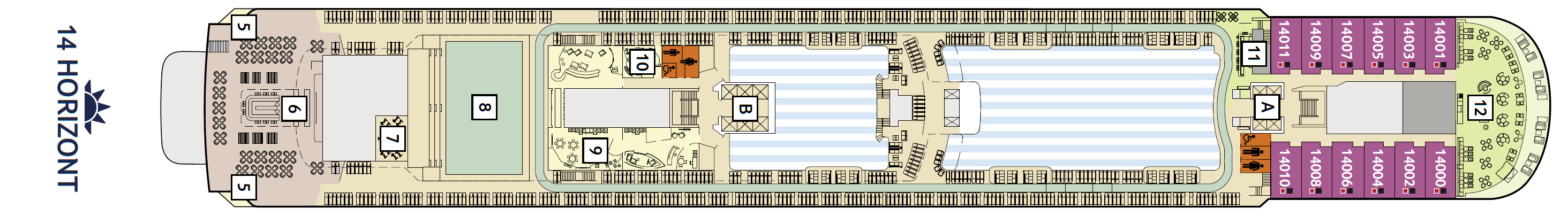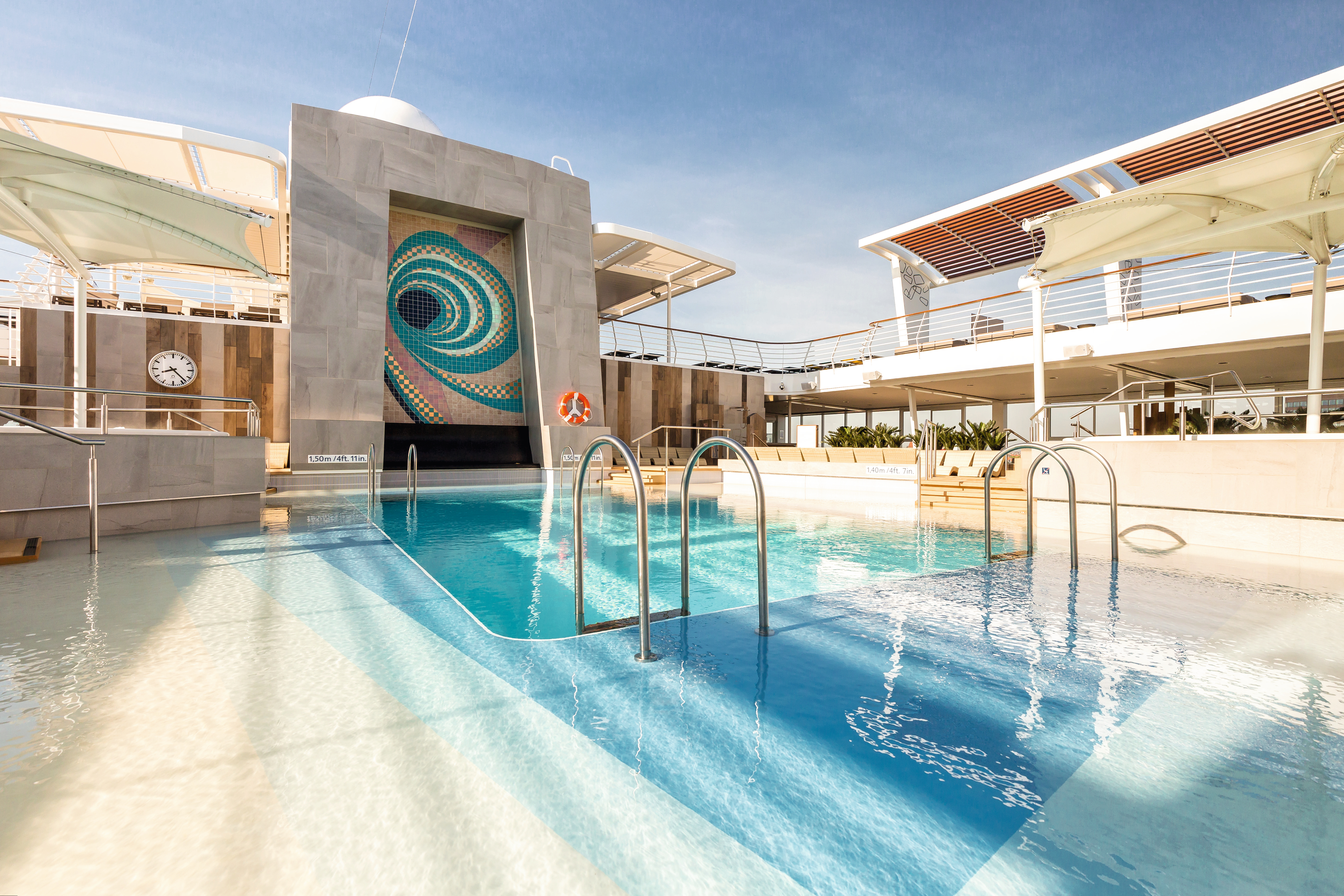Dit schip heeft maar liefst een spa en fitness ruimte van 1800m2. Ook de buitendekken zijn ruim opgezet, zodat u altijd een plekje heeft om te genieten van het uitzicht!