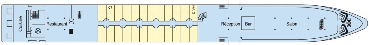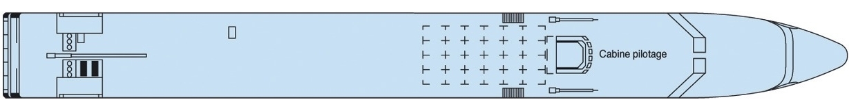Faciliteiten omvatten een lounge-bar met een dansvloer – bar – eetkamer – groot zonnedek met ligstoelen – Franse balkons – cadeauwinkel. Centrale verwarming, 220V elektriciteit, airconditioning, radar, radiofoon, Wi-Fi aan boord.