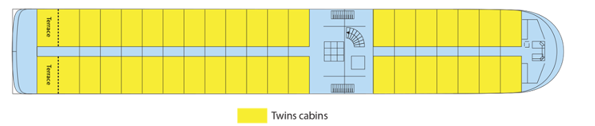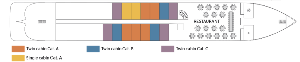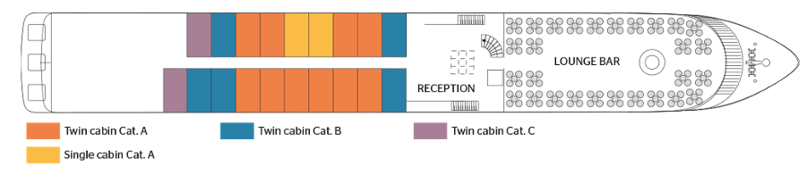 Faciliteiten omvatten een lounge-bar met een dansvloer – bar – eetkamer – groot zonnedek met ligstoelen – Franse balkons – cadeauwinkel – lift. Centrale verwarming – 220V elektriciteit – airconditioning, radar – radiofoon – Wi-Fi.