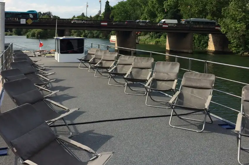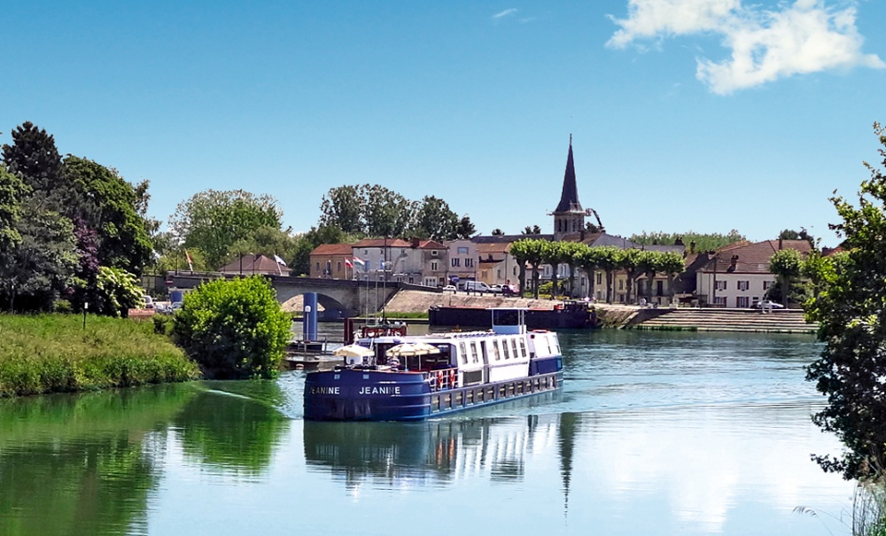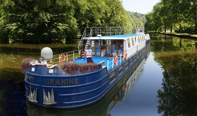 Het binnenschip “Jeanine” vaart langs de kanalen in Frankrijk. De MS Jeanine is in april 2013 volledig gerenoveerd en is een van de modernste schepen die vandaag de dag in bedrijf zijn.