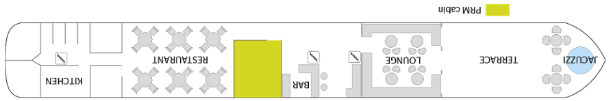Faciliteiten omvatten ruime lounge met bar – restaurant – zonnedek met chaise zitkamers en parasols – barbecueplaats – jacuzzi bij de boeg van het schip – fietsen aan boord – Wi-Fi.