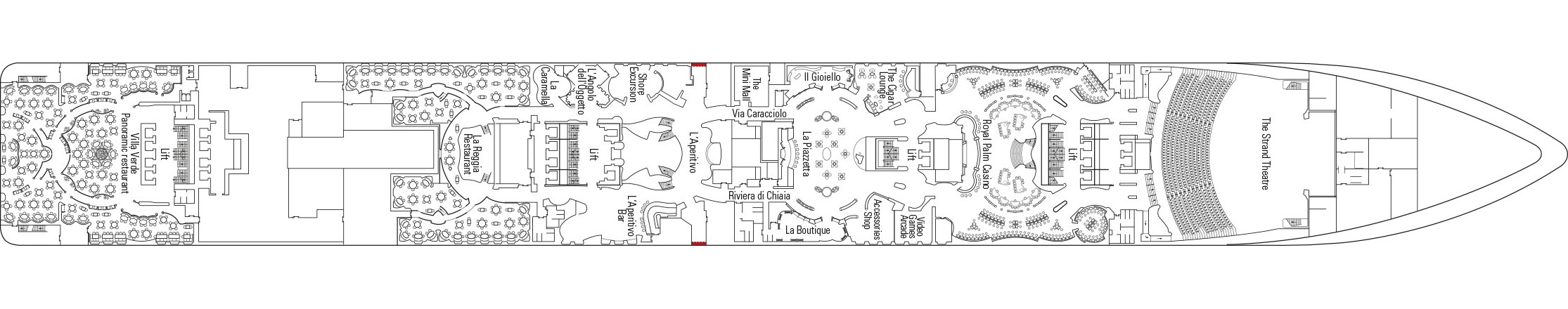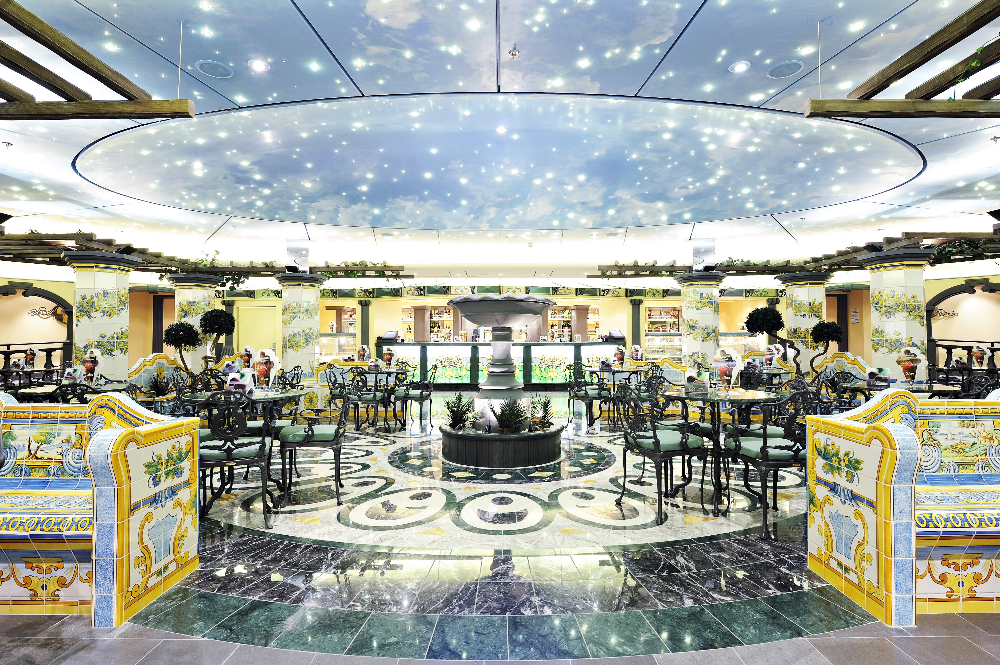 U zult genieten van de livemuziek en de grote verscheidenheid aan bars en restaurants aan boord. Voedselkeuzes om te verkennen zijn onder meer authentieke mediterrane specialiteiten en pittige Tex-Mex. Maak de avond compleet met een show van wereldklasse in The Strand Theatre, een winning streak in het Royal Palm Casino of dansen tot het ochtendgloren in de Club 33 Disco.