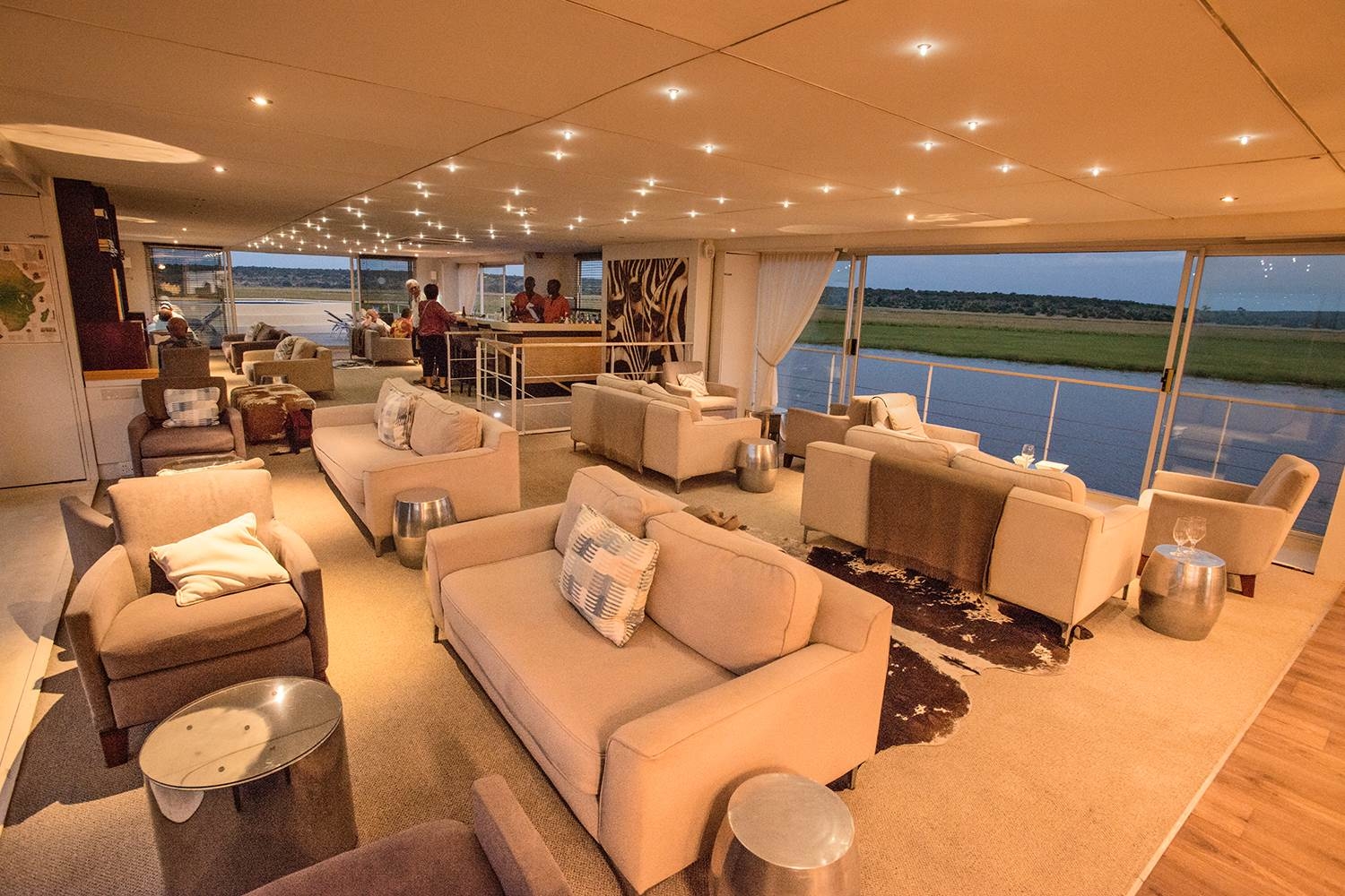 De intieme Zambezi Queen met 28 passagiers is speciaal ontworpen voor het bekijken van wilde dieren en maakte haar debuut op een van ’s werelds meest fascinerende plekken, de legendarische Chobe-rivier in Afrika. Terwijl ze langs de rivier drijft, zien dieren geen bedreiging en bieden ze je unieke game-ervaringen van dichtbij. Om het milieu niet te schaden, gebruikt de milieuvriendelijke Zambezi Queen bovendien een waterstraalaandrijvingssysteem, zuinige en emissiearme generatoren en een zonnesysteem. Een afgesloten eetkamer, lounge en bar met airconditioning sieren het bovendek, evenals een zonnedek in de openlucht, compleet met dompelbad. Suites hebben een eigen balkon waar u kunt genieten van vrij uitzicht op de rivier en het Afrikaanse landschap. Laat u de hele dag door trakteren op gratis Zuid-Afrikaanse wijnen, bier, lokale sterke drank, frisdrank en mineraalwater. En op een speciale avond kunt u genieten van een Afrikaans thema-diner met traditionele gerechten en entertainment.